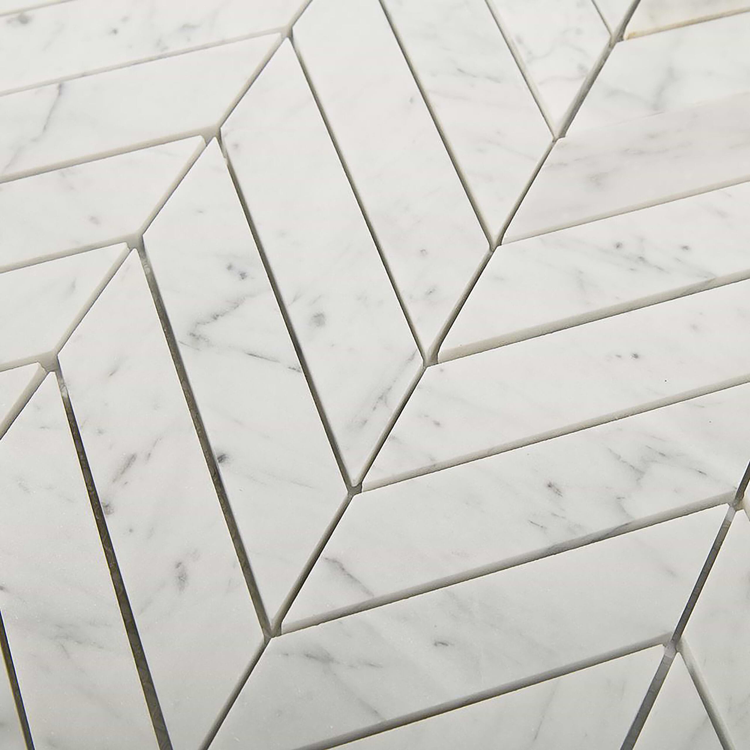Carrara Mosaic Chevron 1x4 Honed Marble
