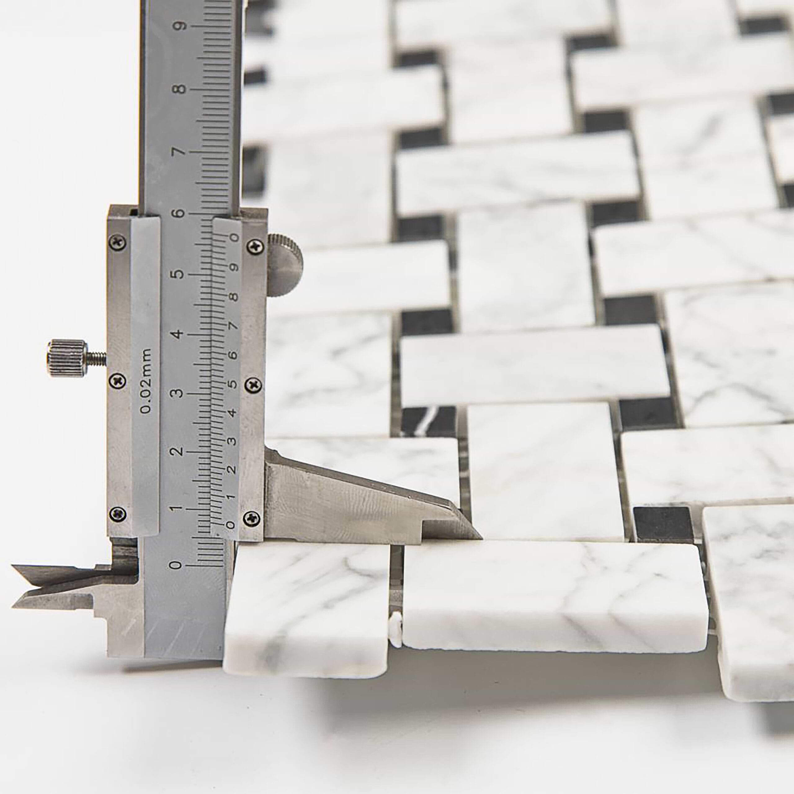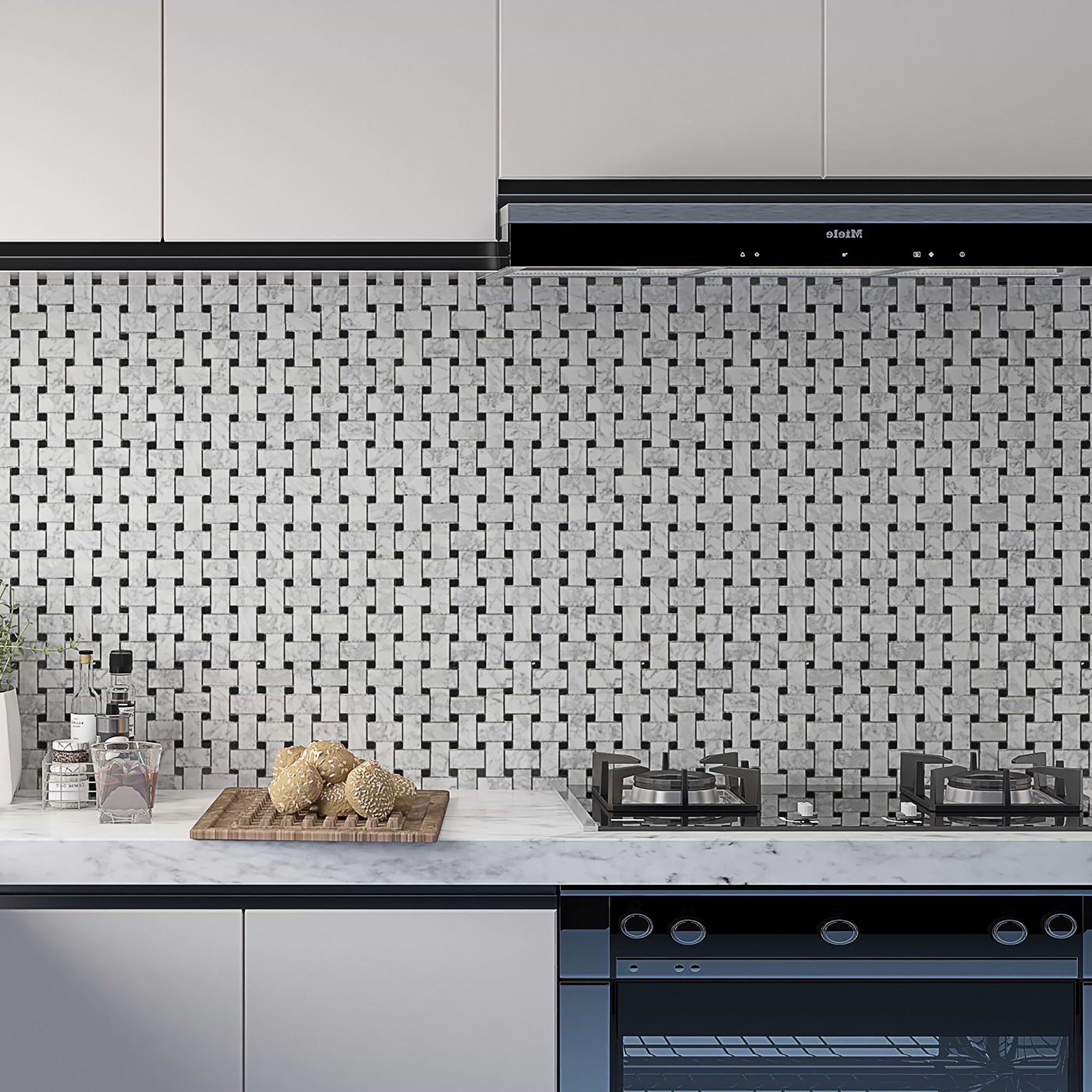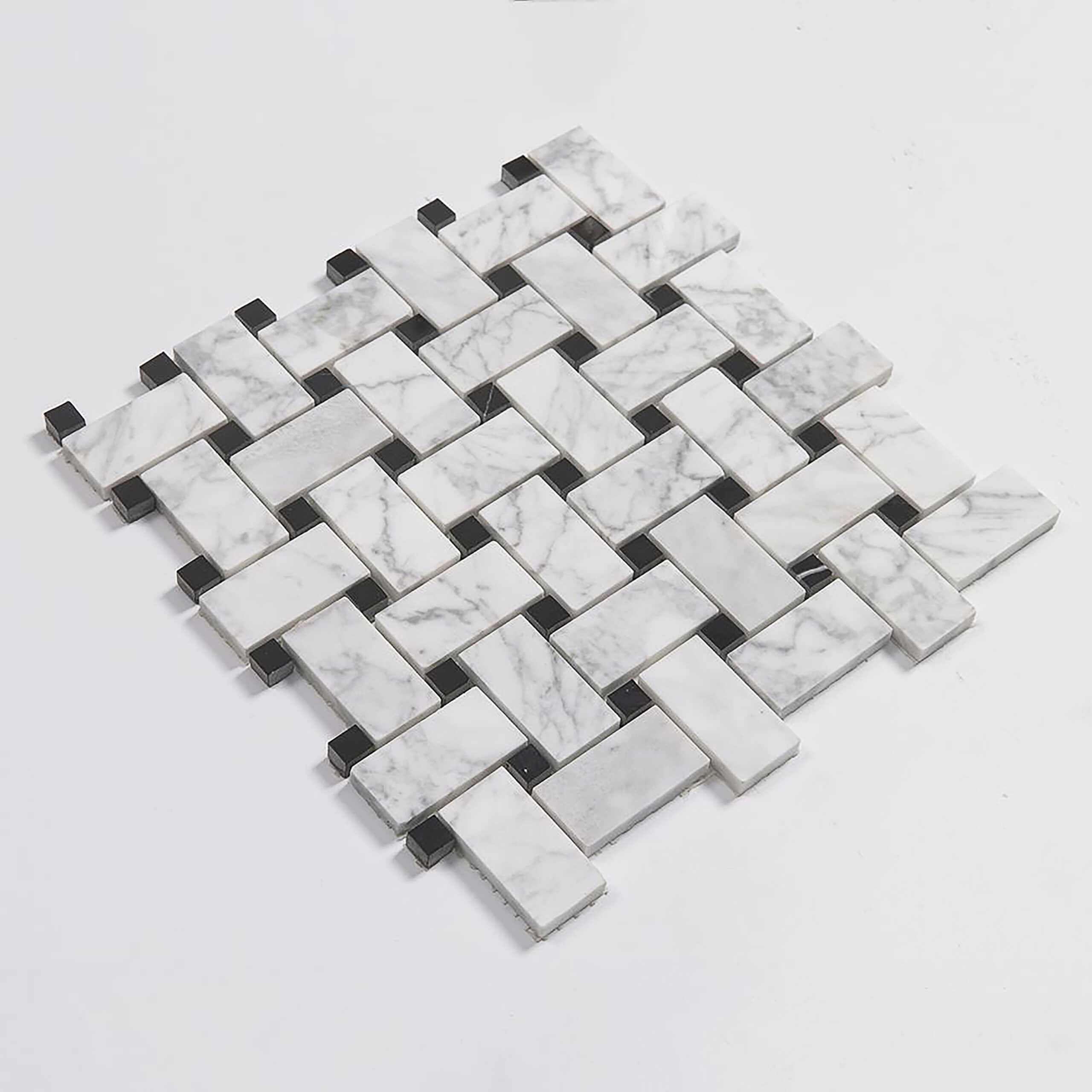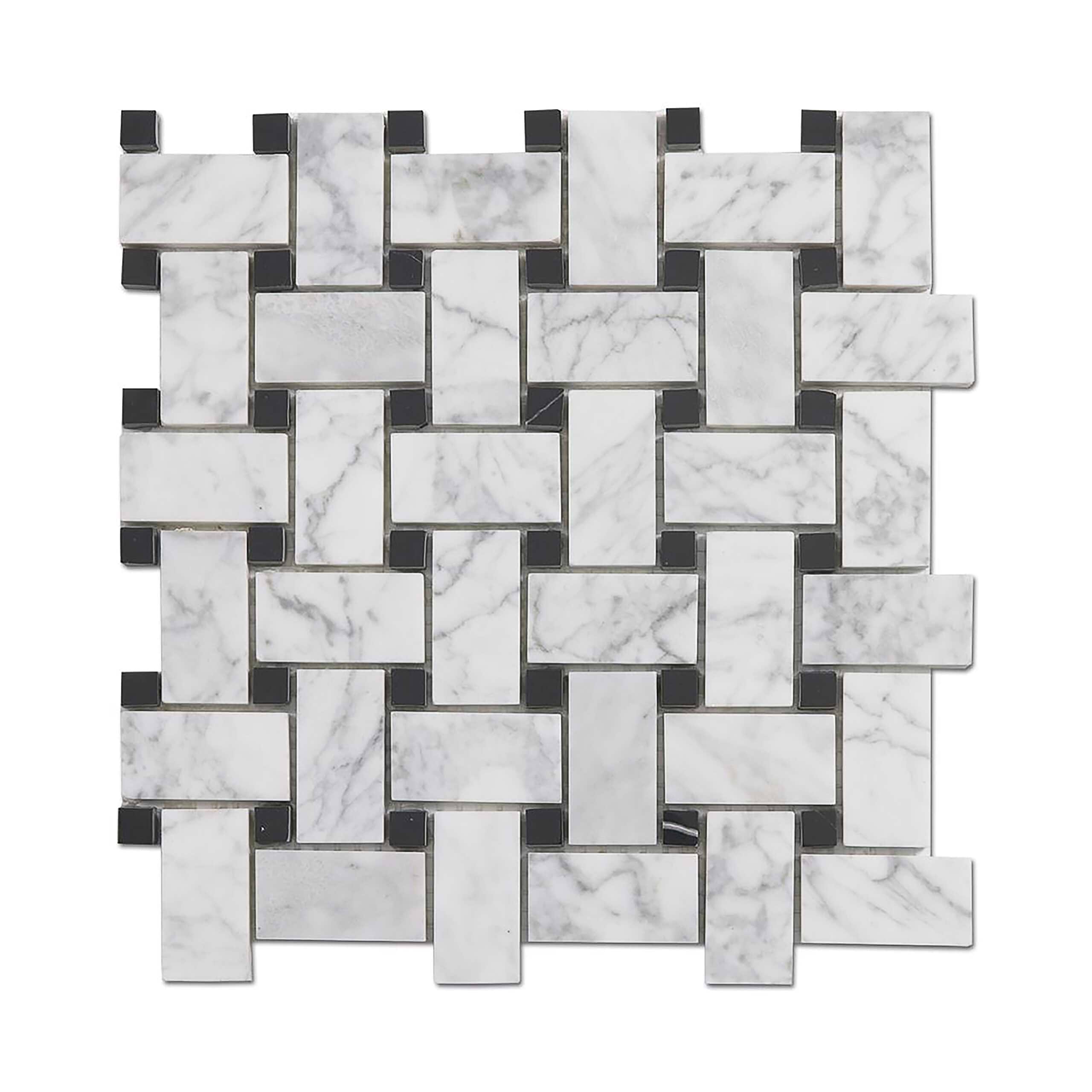 Carrara Mosaic with Negro Marquina Basketweave Polished Marble