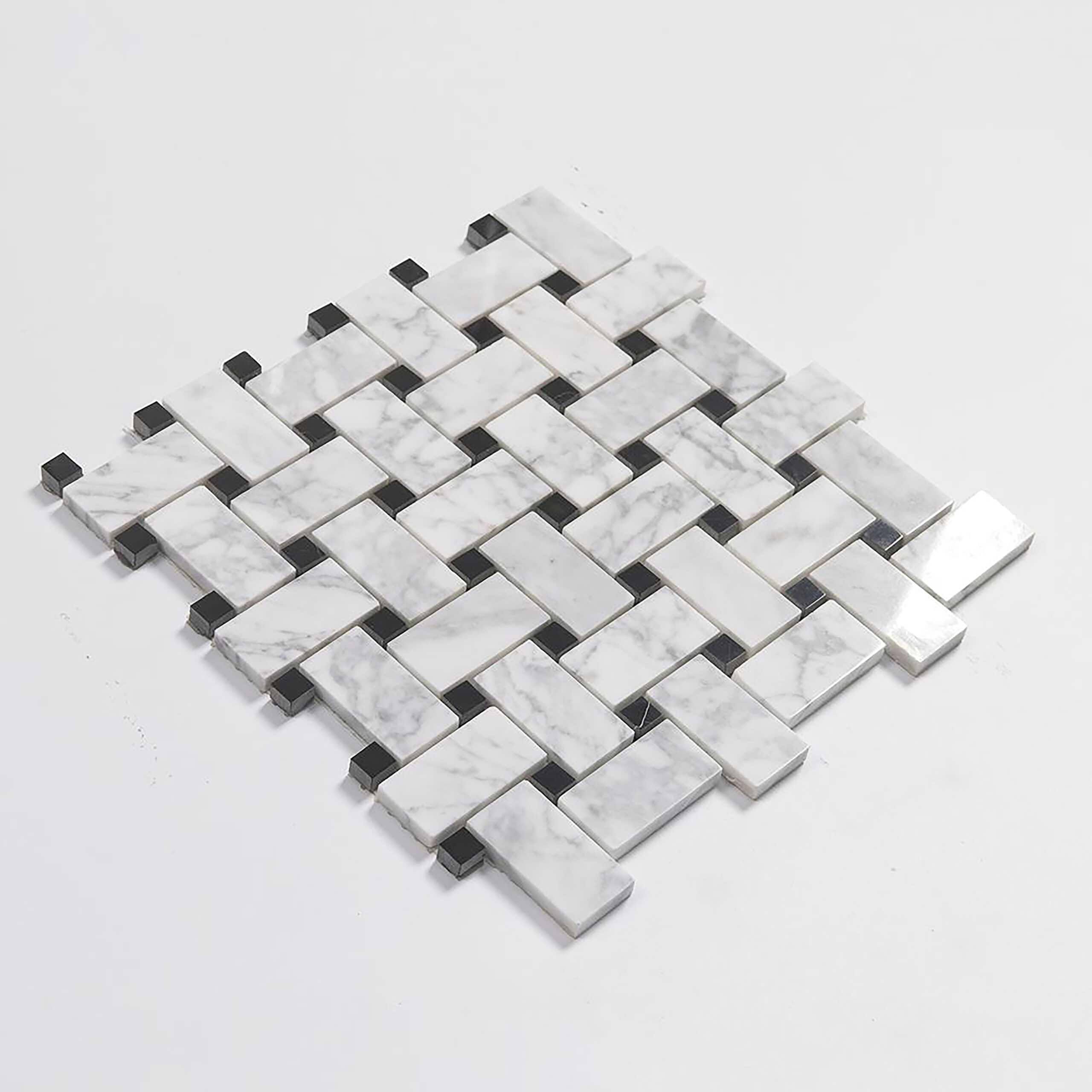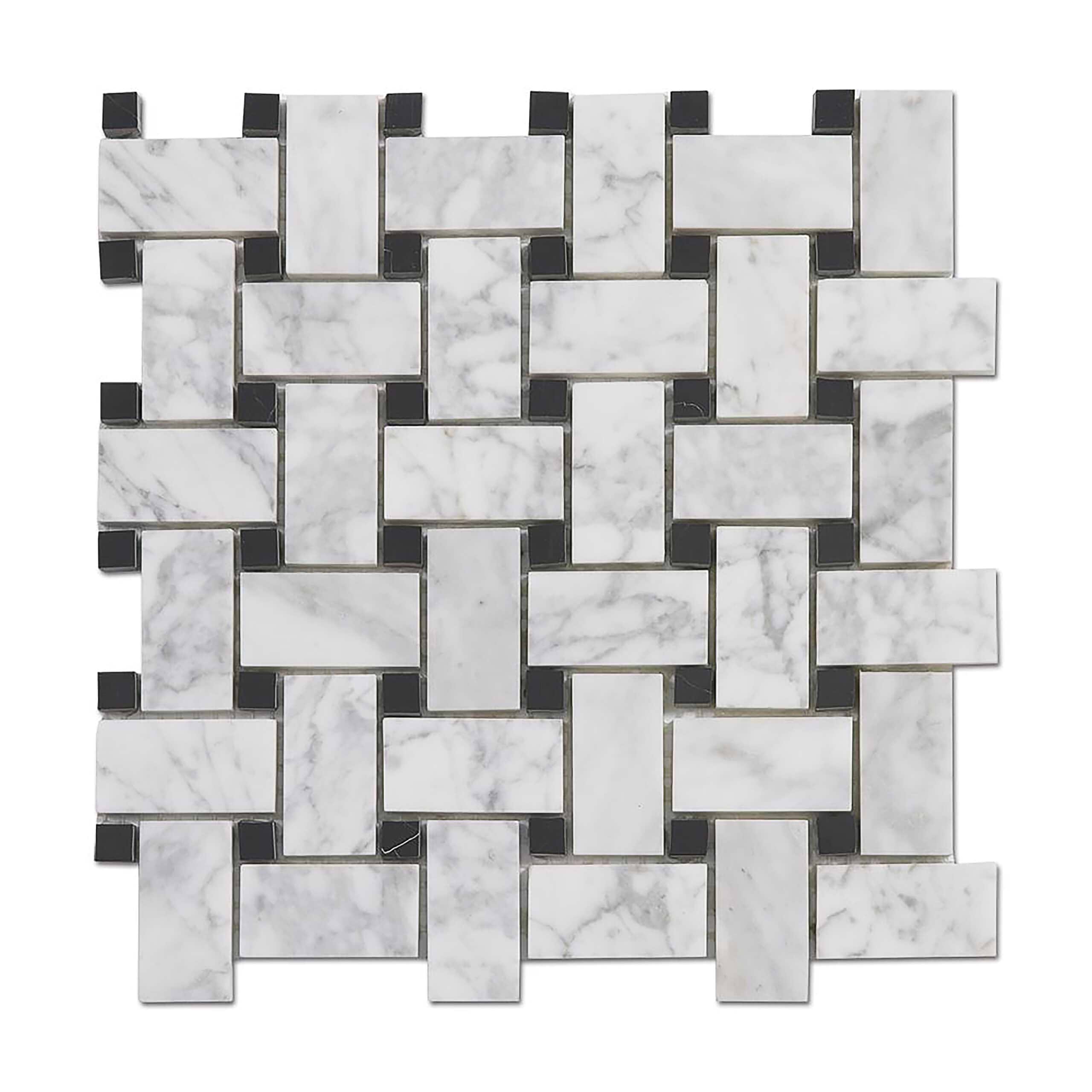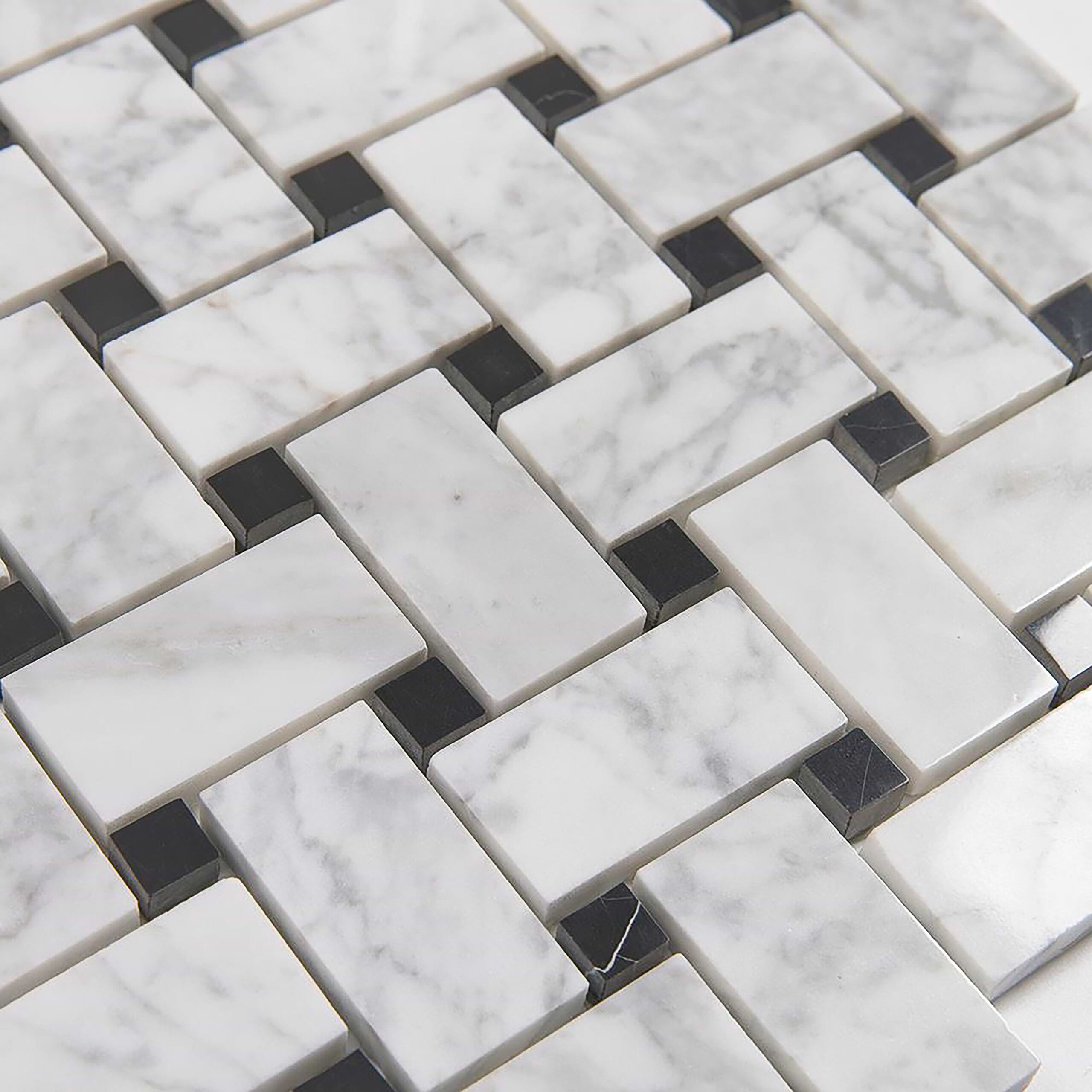 Carrara Mosaic with Negro Marquina Basketweave Honed Marble