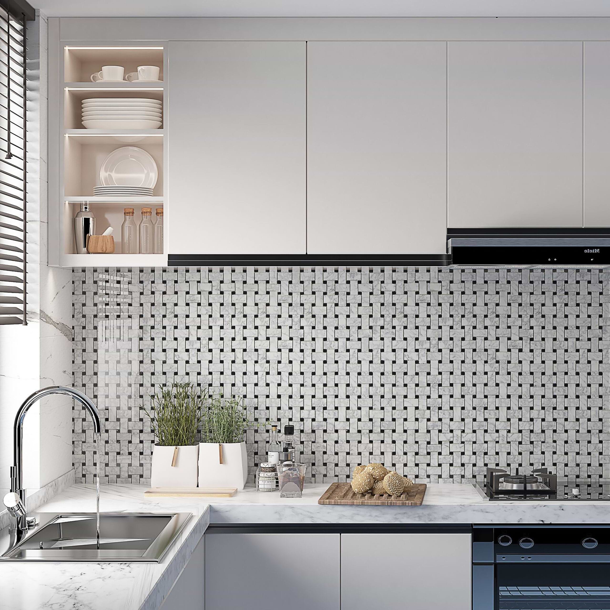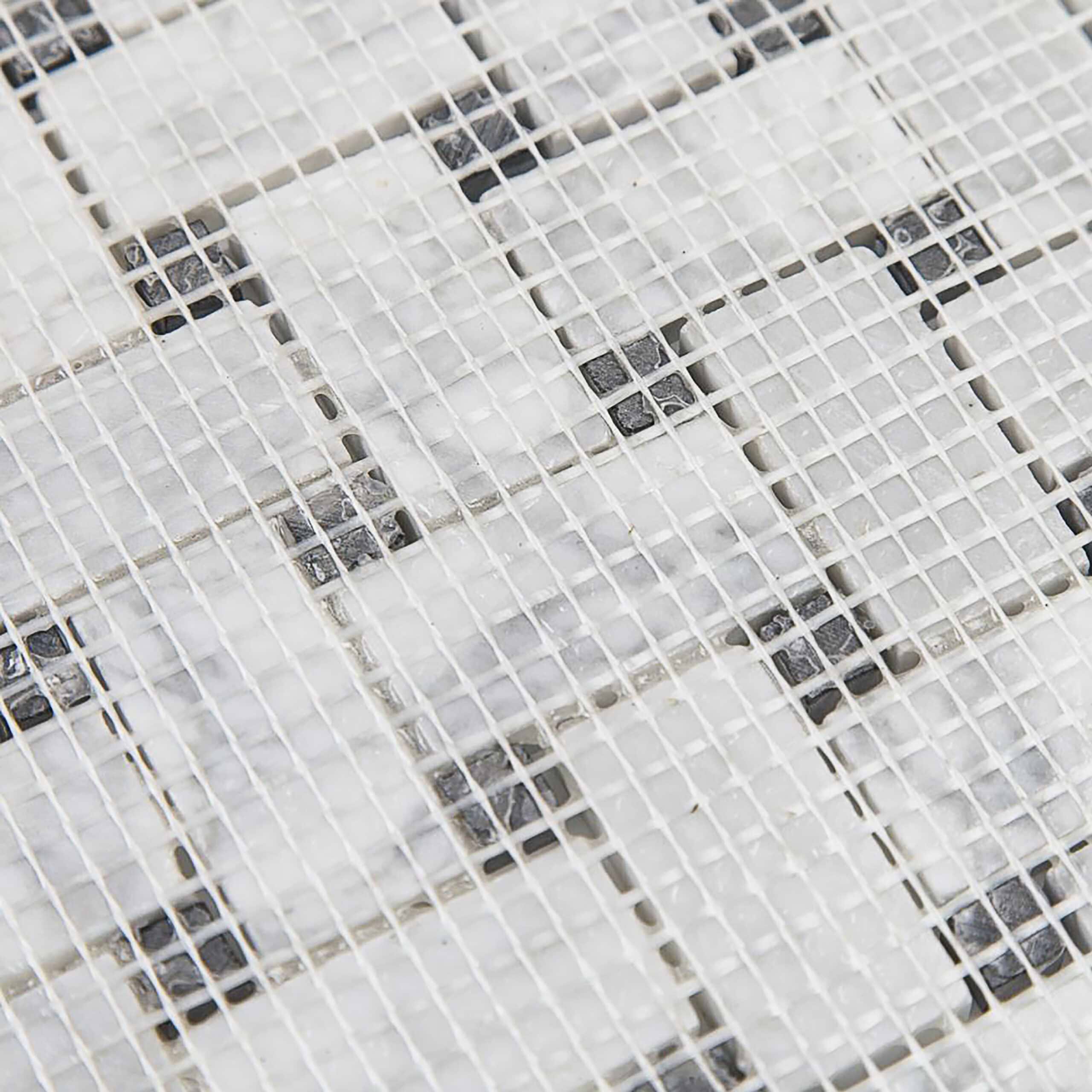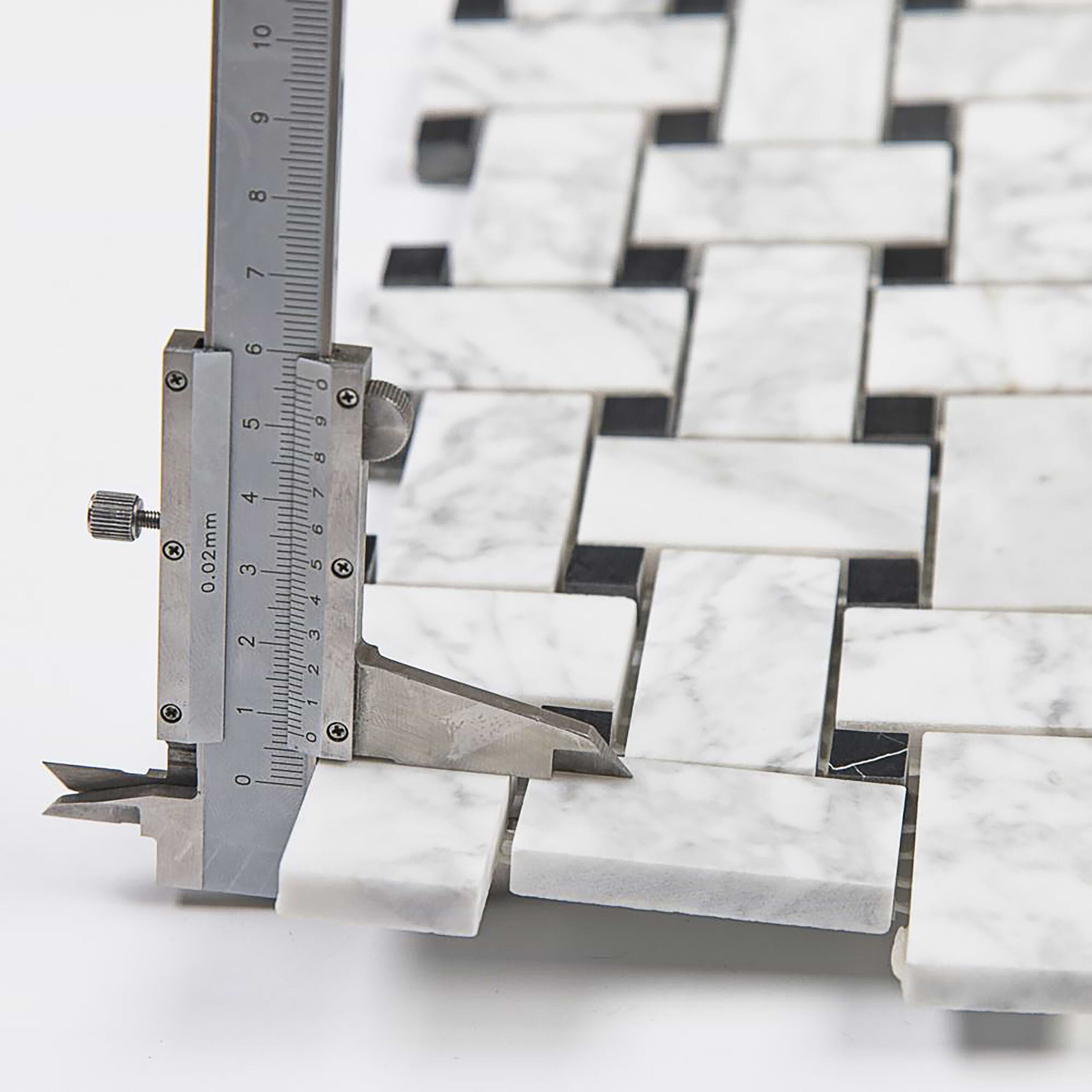 Carrara Mosaic with Negro Marquina Basketweave Honed Marble
